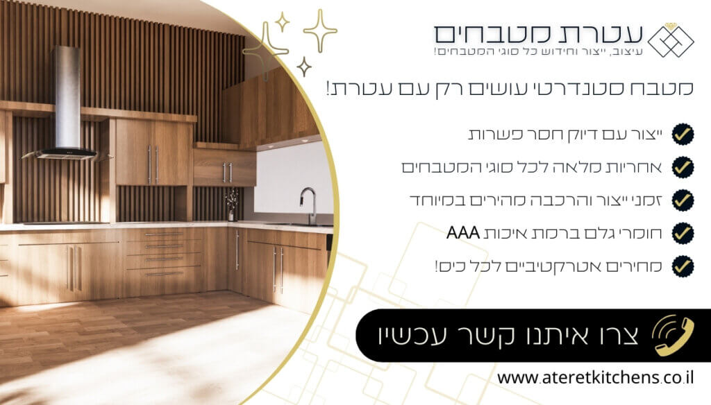 מטבח סטנדרטי מתקינים רק עם עטרת ונהנים ממטבח מרווח ונוח לבישול ואירוח!